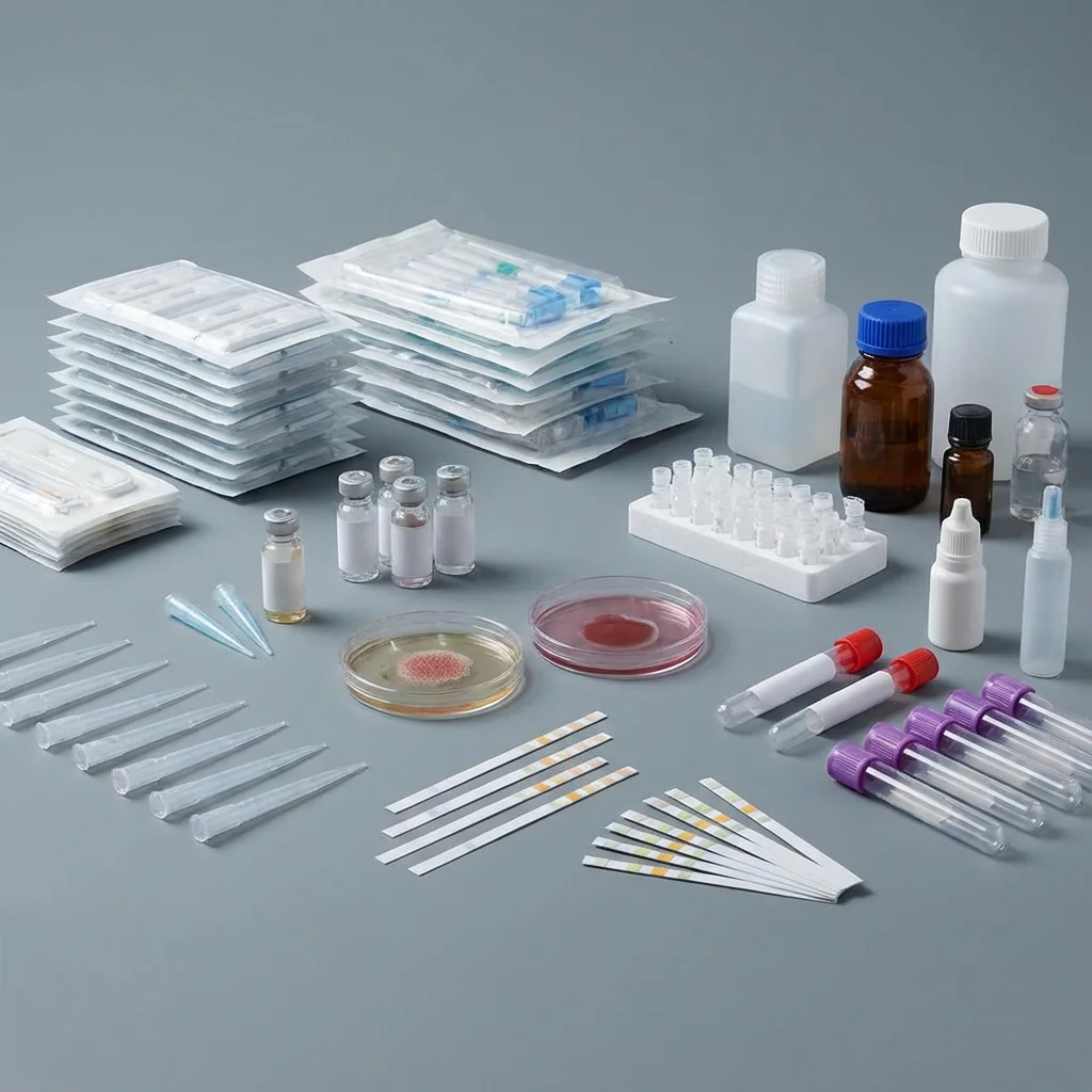 انواع کیتها، لولهها و مواد مصرفی آزمایشگاهی برای انجام دقیق تستهای تشخیصی و تحقیقاتی.