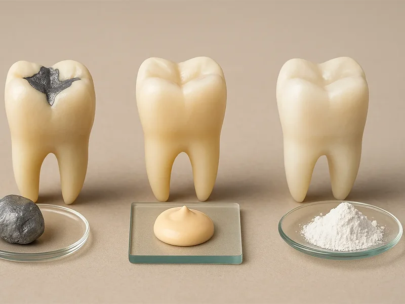 آمالگام یکی از قدیمیترین و مقاومترین مواد ترمیمی برای دندانهای خلفی است. آمالگامهایی مثل آمالگام سینالوکس به دلیل استحکام بالا و قیمت مناسب، هنوز هم در بسیاری از مطبها استفاده میشوند.