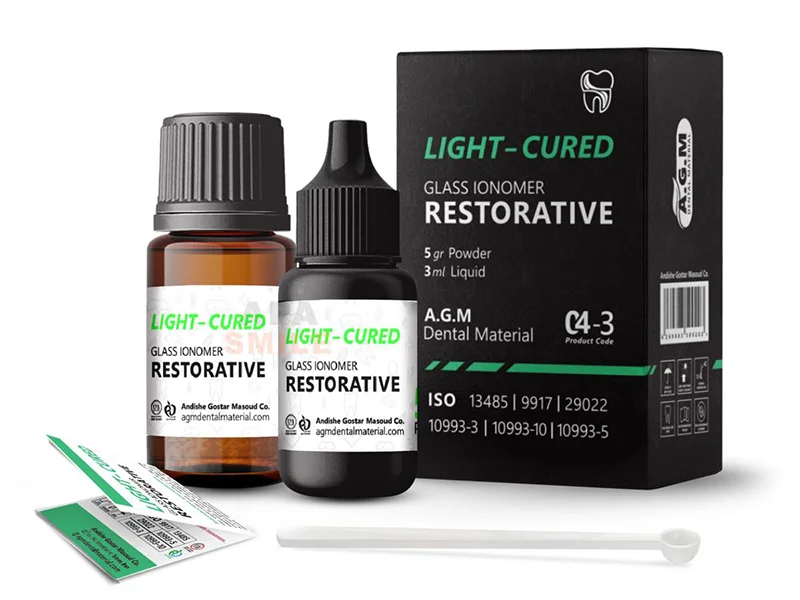 گلاس آینومر یک ماده ترمیمی متشکل از پودر شیشه و پلیاکریلاسید است. در نوع لایت کیور (Light Cure)، عمل سخت شدن ماده با تابش نور آبی دستگاه لایتکیور انجام میشود؛ این ویژگی به دندانپزشک فرصت تنظیم بهتر فرم و شکل ترمیم را میدهد.
